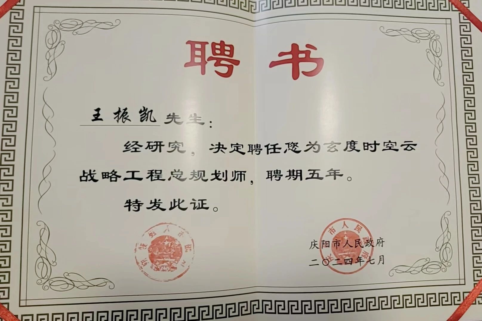 ▲ z6com官网登录入口科技副总裁被庆阳市人民政府聘用为玄度时空云战略工程总妄想师